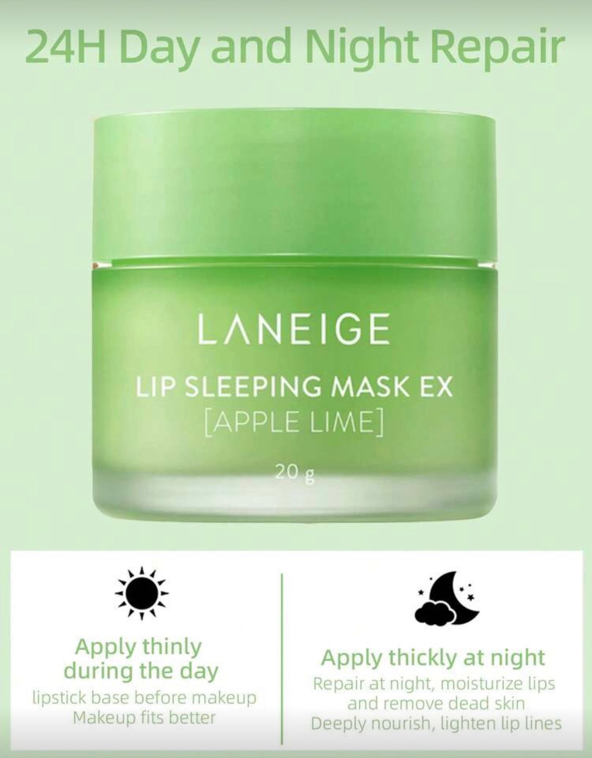 The Laneige K-Beauty 20g Lip Sleeping Mask is a nourishing overnight treatment that hydrates and repairs dry, flaky lips. Enriched with Vitamin C, murumuru, and shea butter, it delivers antioxidants and deep moisture while you sleep, leaving lips soft, smooth, and revitalized. Its refreshing Apple Lime scent adds a touch of Korean beauty luxury to your nighttime skincare routine.